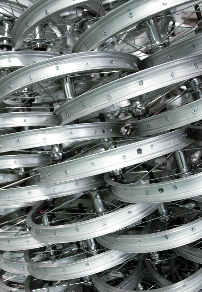 “Ürün bize depodan malzeme olarak geliyor, montaj kısmına indiriyorlar. Hangi bölgede hangi parça takılacaksa, o parçanın dağılımı yapılıyor. Burada üretim başlangıç noktası var, boyahaneden geliyor, etiketleme yapılıyor, üretim bandına iniyor. Maşası, bagajı, mandalı takılıyor. Bu aşamadan sonra diğer banda geçiyor. İlk aynakol basıldıktan sonra, diğer parçalar attırıcı, arka tekerlek, frenler, vitesler takılıyor. Diğer bölümde jantlar örülüyor, akordu yapılıyor, lastik takılıyor, sonra son bölmeye geliyor. Her bir arkadaş bisikletin farklı bir parçasından sorumlu ve üretim bandında bisiklet şekillendikten sonra. Ambalajı tamamlanıp ürün koliye giriyor. 250 farklı çeşit ürün yapabiliyoruz. Çelik ham maddeyi Türkiye’den karşılıyoruz. Bazı plastik aksamları da biz üretiyoruz. Çocuk bisikletlerindeki çamurluk, pedallar gibi.”