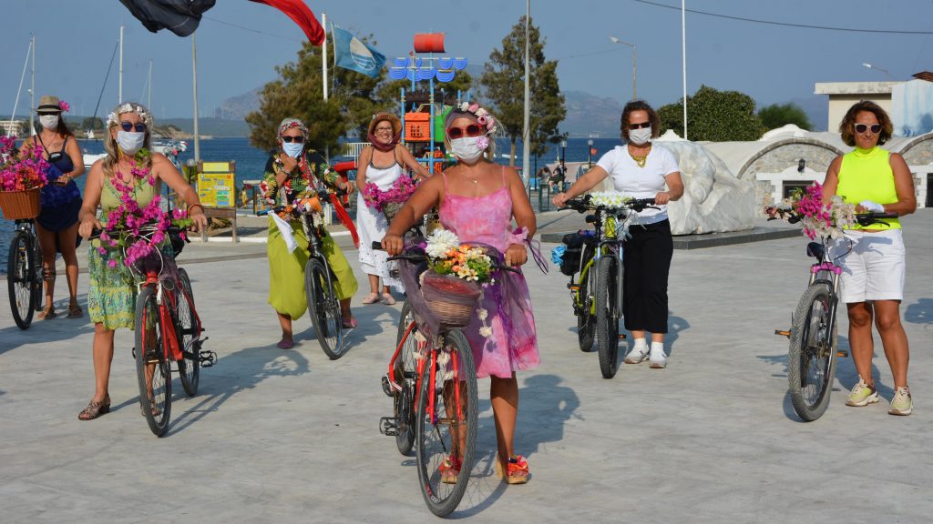 Datça’da Süslü Kadınlar Bisiklet Turu’na katılan kadınlar adına konuşan Ümit Kırcali (62), “Amacımız farkındalık yaratmak. Kadınlar senede bir gün değil, her hafta pazar günleri bisiklete binmek istiyor. Pandemi, ulaşımda bisikletin ne kadar önemli olduğunu bir kez daha ortaya koydu. ‘Arabadan in, bisiklete bin’ bizim mottomuz. Seneye, koronavirüssüz günlerde çok daha kapsamlı etkinliklerde buluşmayı ümit ediyoruz” dedi.