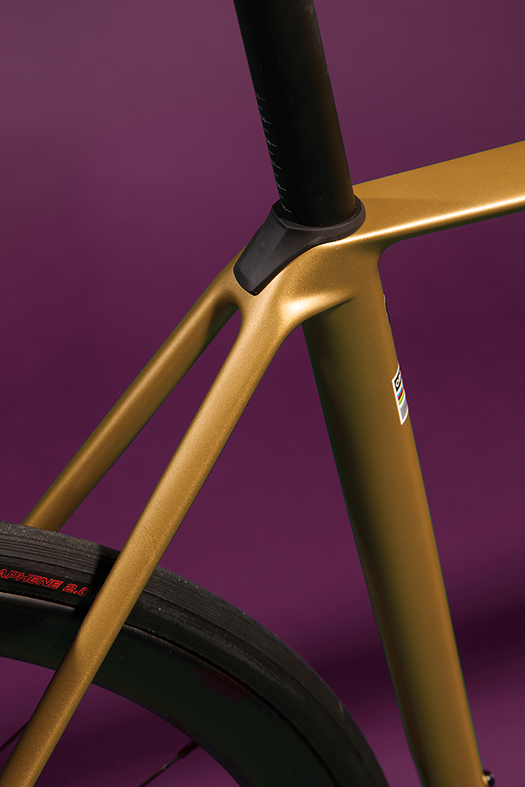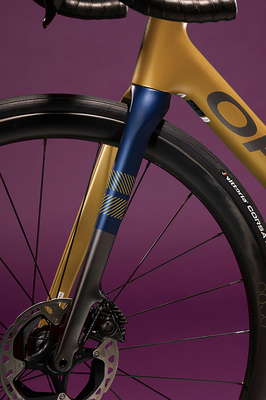 Arizaga, “Pelotondaki bisikletlerin çoğu birbirinden zor ayırt edebiliyor, bu yüzden fark yaratmak istedik” diyor. “Bu, performans ve görünüm arasında 50/50 oranında bölünmüş bir karardı.”