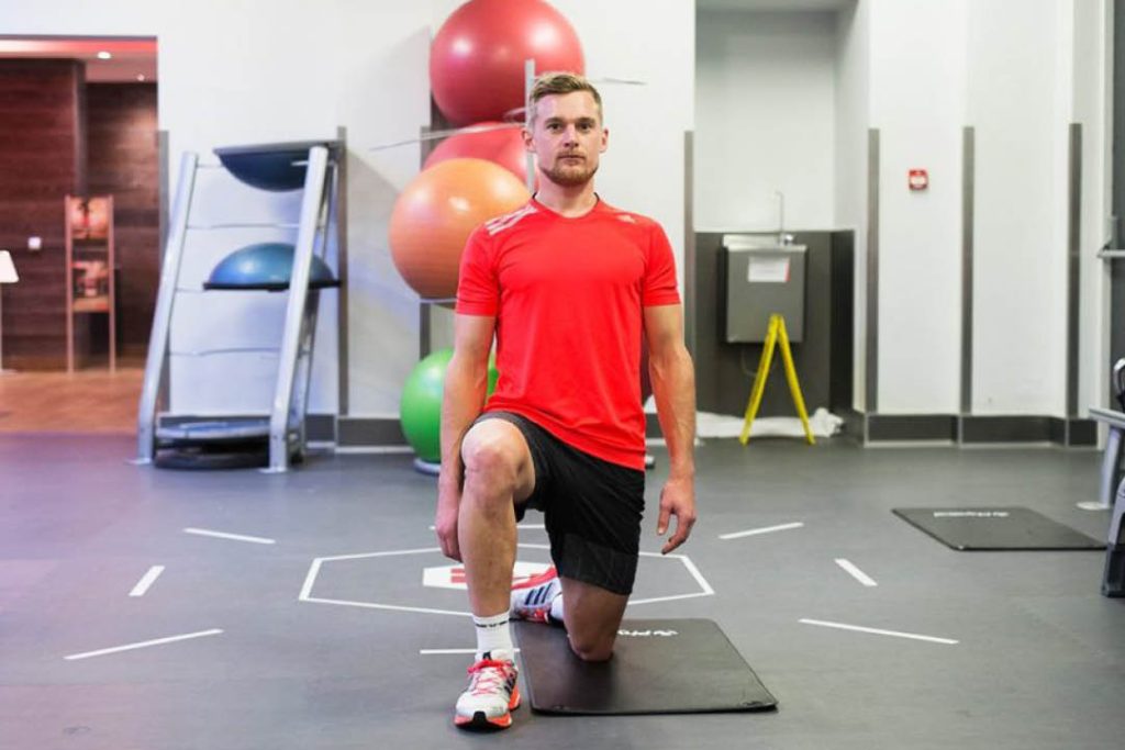 Nasıl yapılır: Sağ bacak diz yukarıda ve sol diz yerde olacak şekilde, kalçalarınızı öne doğru itin. Gövdenizi ve kalça kaslarınızı güzelce sıkın. Sol elinizi havaya kaldırın ve sağa doğru eğin, sağ elinizle sol bacağınızın topuğuna ulaşmayı hedefleyin.