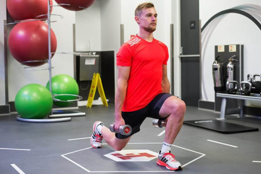 Nasıl yapılır: Her iki elinizde bir dambıl veya plaka ağırlığı tutun, kollarınız düz bir şekilde yanınızda olsun. Göğsünüzü yukarı ve dışarı doğru itin ve core kaslarınızı çalıştırın. Bir bacağınızla öne doğru adım atarak diğer bacağınızı yerinde tutun (hem ön bacak hem de arka bacak 90 derecelik bir açıda olmalıdır).