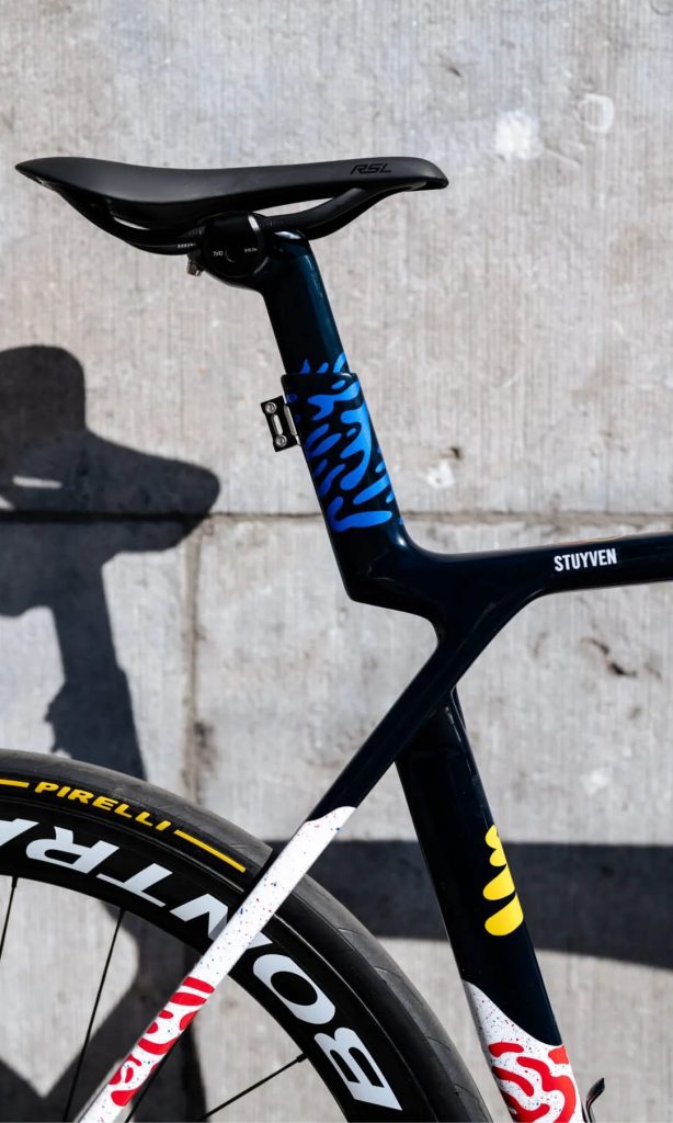 “Couleur” adını taşıyan bu benzersiz renk kombinasyonu, Trek’in ProjectOne adlı şirket içi özelleştirme ekibi ile işbirliği içinde gerçekleştirildi. Maşadan arka vites değiştiriciye kadar uzanan canlı ana renk çizgileriyle, kadro üzerinde el değmemiş hiçbir yer yok. Tasarım, Matisse’in klasik stilinden esinlenirken, mavi, kırmızı ve sarı renklerle Lidl-Trek’in izlerini de taşıyor.