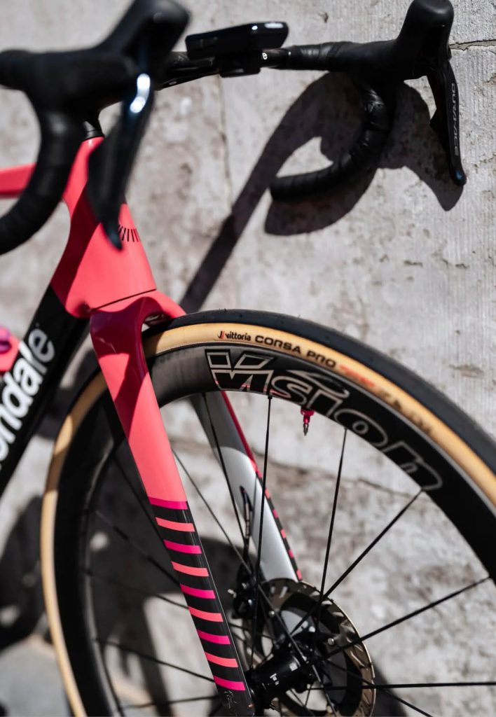 EF Education-EasyPost’un uzun vadeli ortakları olan Cannondale’in SuperSix Evo modeli, bu yılki Tour de France’da Ben Healy, Neilson Powless, Kasper Asgreen ve takımın diğer üyeleri tarafından tercih edilen bisiklet modeli. Takımın pembe kimliğine uygun olarak, bisikletlerin kadroları takımın cesur renk şemasını yansıtan göz alıcı bir boyama ile süslenmiş.