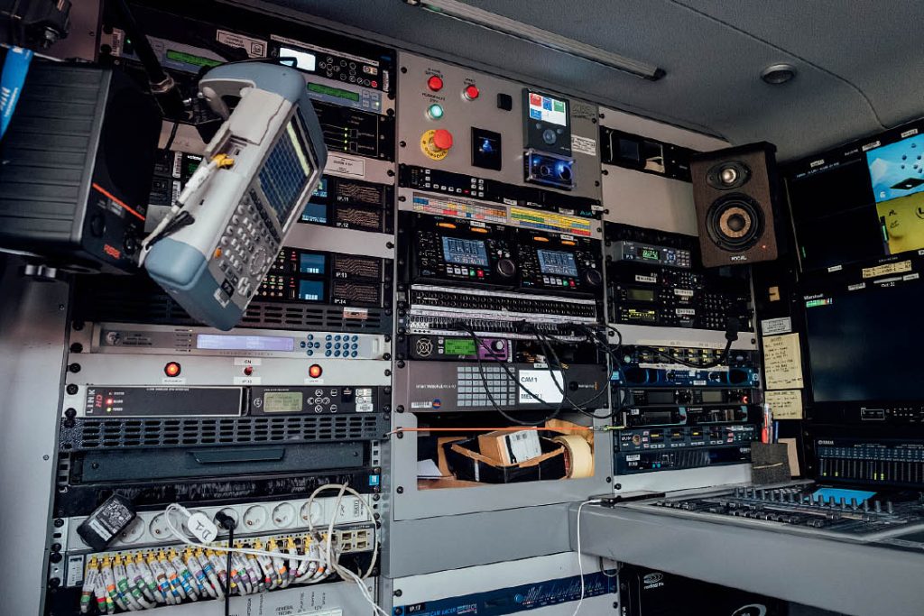 Kirby, “Giro’da bir yayın ünitesi varken, Tour’da kabin bitiş çizgisinde yan yana dizilmiş sekiz çift katlı araç içerisinde” diyor. “Her iki tarafta da ses duvarları var ama Sean’la aramızdaki boşluk bir dizüstü bilgisayar genişliğinde. Adam Hansen gibi üçüncü bir yorumcumuz varsa çoğu zaman ayakta durmak zorunda kalıyoruz.”