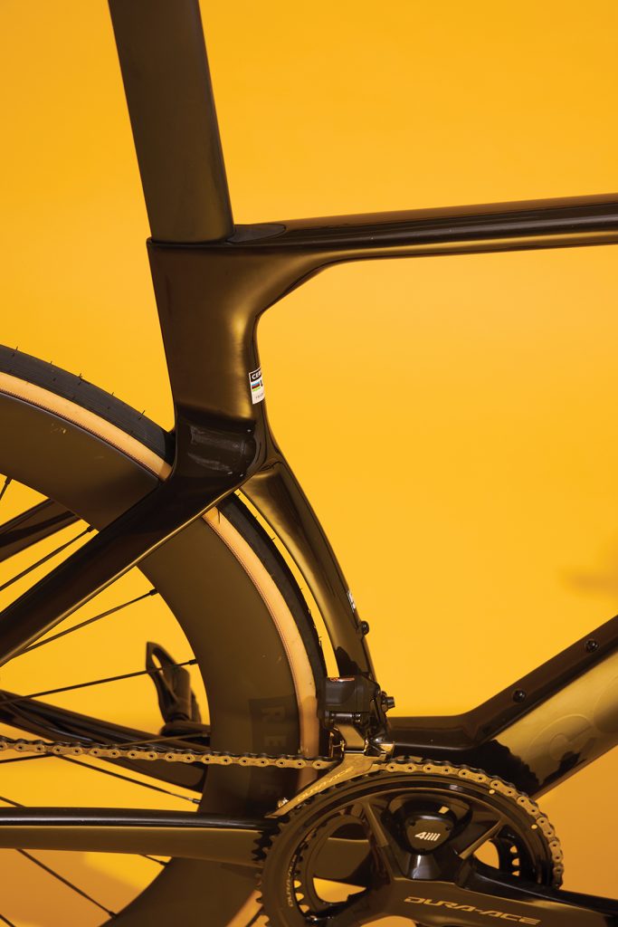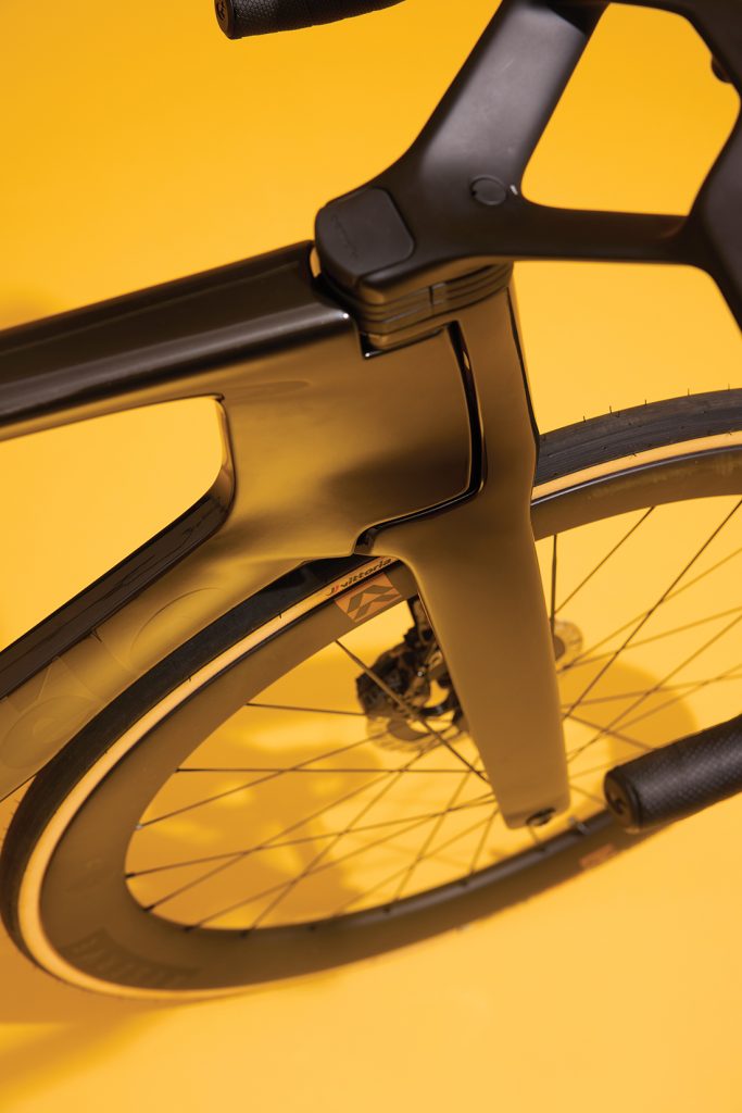“Öndeki yeni 57mm’lik jant, önceki nesil 52mm janta göre çok daha derin,” diyor Roy. “Kadro ile birlikte, yine ön tarafta profil derinliğini artırma örneği. Amacımız, hız kazandırırken önceki ön jantın yan rüzgârlardaki stabilitesini kaybetmemekti.”