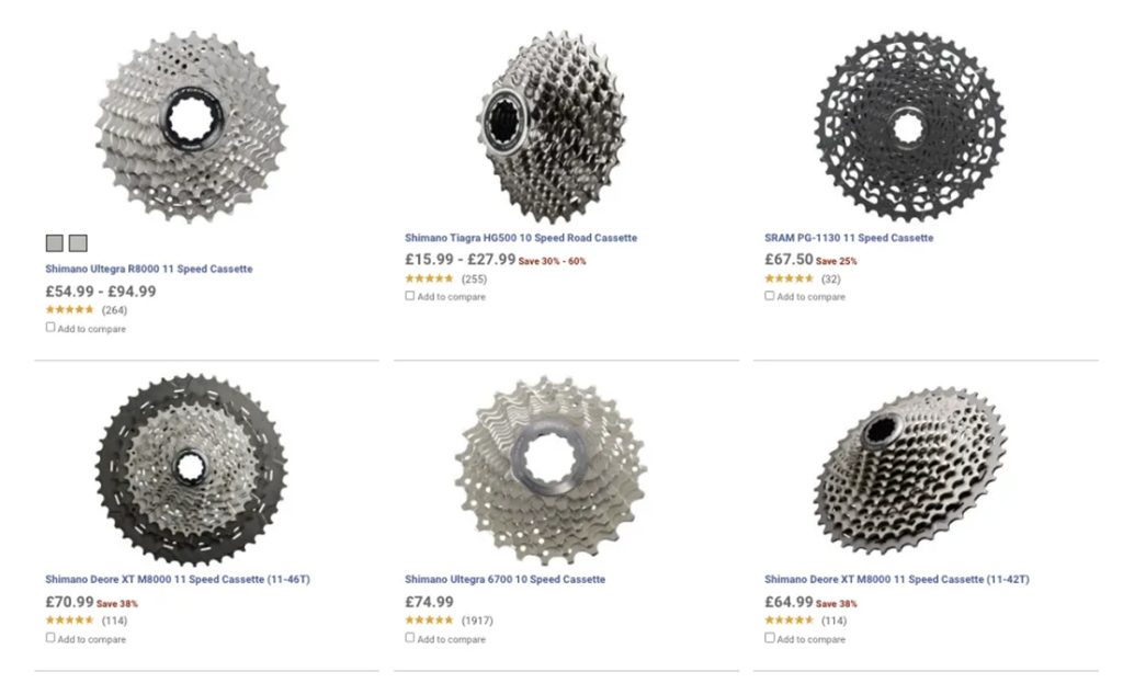 Yine zincirlerde olduğu gibi, üreticinin alt seviye grup setlerinden tercih ederek ciddi oranda tasarruf edebilirsiniz. Örneğin, 12-vites Shimano Ultegra 11-34T kaset, 12-vites Shimano Dura-Ace 11-34T kaset ile aynı şekilde çalışır. Tek farkı biraz daha ağır olması ve çok daha ucuz olmasıdır.