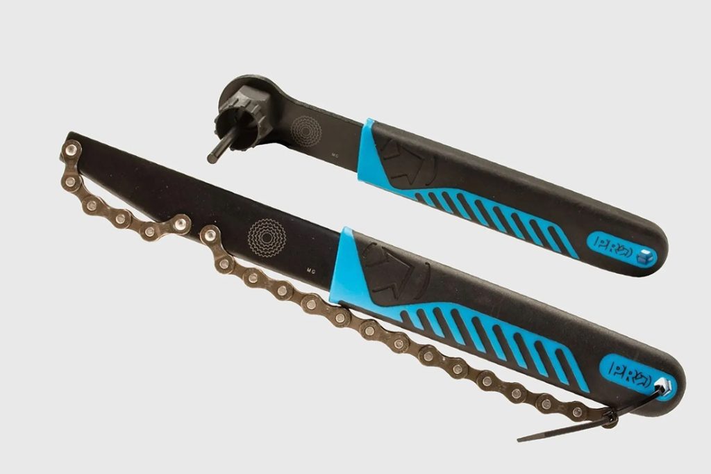 Kilit somununu gevşetmeye çalışırsanız, serbest göbek mekanizmasıyla birlikte tüm kaset döner. Bu yüzden kaseti sabit tutmak için bir zincir anahtarı (chain whip) kullanmanız gerekir. Genellikle kısa bir zincir parçası bağlı metal bir çubuk şeklindedir. Zinciri kasetin bir dişlisinin etrafına sarar ve böylece kilit somununu gevşetirken kaseti sabit tutabilirsiniz.