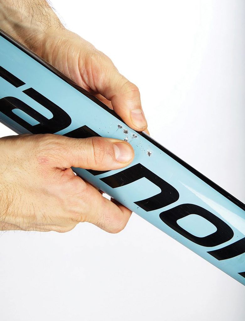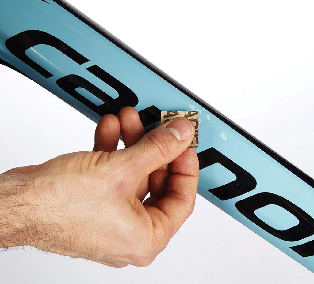 Hasar kontrolü: Küçük çentikler alüminyum veya çelik kadrolarda büyük hasarlara yol açmaz. Karbonu da tehlikeye atma olasılıkları düşüktür, ancak başlamadan önce, etrafındaki karbonun sıkıldığında yumuşamadığını kontrol edin. Ortadan yayılan çatlaklara bakın.