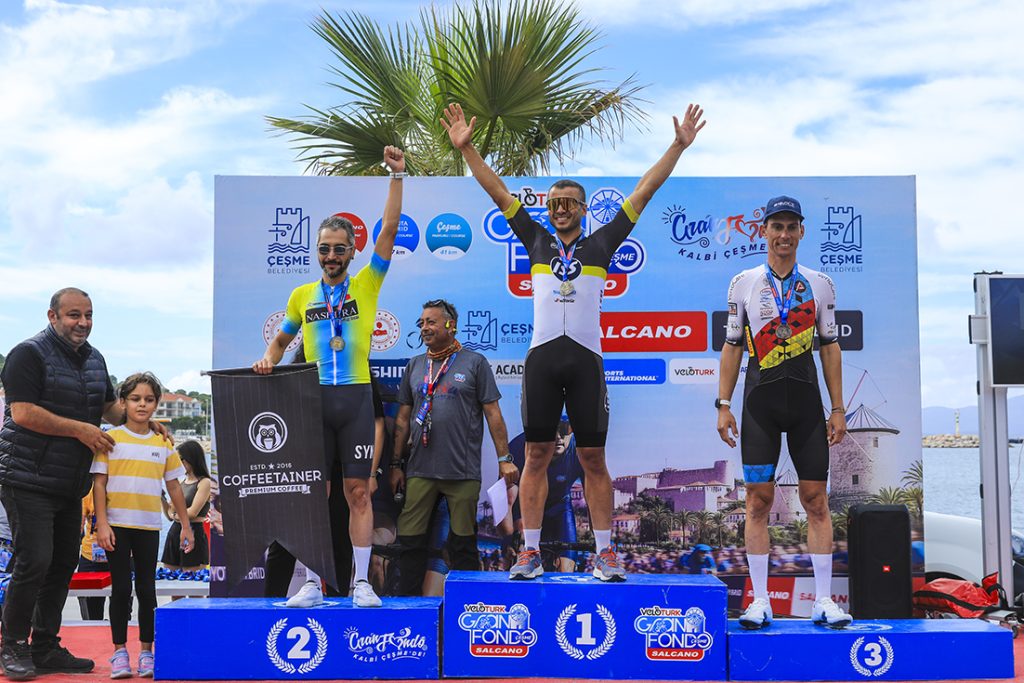 Veloturk Gran Fondo Çeşme by Salcano bu yıl 9’uncu kez gerçekleştirildi. 17 ülkeden 715 sporcunun katıldığı organizasyonun 91K, 67K ve 41K’lık parkurlarında dereceye girenlere ödülleri düzenlenen törenle verildi. Çeşme merkezden start alan ve nefes kesen manzaralar eşliğinde adayı turlayan Veloturk Gran Fondo Çeşme, bisiklet tutkusunu gözler önüne seren harika karelerle bezeliydi.